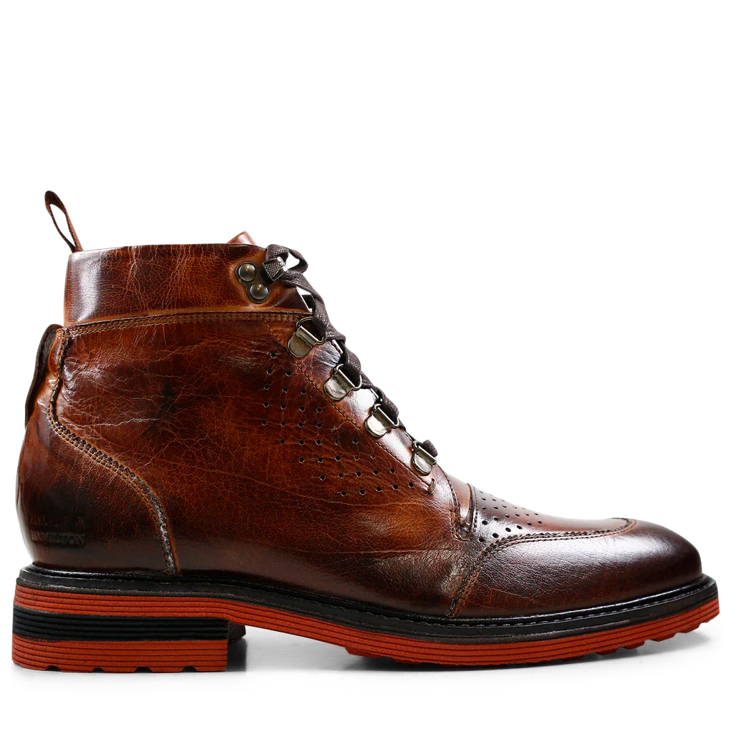 Op zoek naar een alternatief voor klassieke schoenen en sneakers? Dan raden wij je de enkellaarzen van Melvin & Hamilton aan! Overwoog jij nog nooit een enkellaars te kopen? Met de enkellaarzen van Melvin & Hamilton krijg jij nooit koude voeten. Wij zullen jou met onze bruine Trevor 5 enkellaarzen van gedachten laten veranderen! Onze enkellaarzen zijn praktisch, gemakkelijk aan te trekken en maken jouw winterse outfits casual chique. Onze bruine Trevor 5 enkellaarzen zijn gemaakt van natuurlijk gelooid leer en zorgvuldig verfraaid met decoraties. Het is met die reden dat onze enkellaarzen de absolute must-have zijn voor dit herfst- en winterseizoen. Praktisch, soepel, elegant, kleurrijk en comfortabel: onze enkellaarzen hebben met recht hun plaats in de mannelijke kledingkast verdiend!